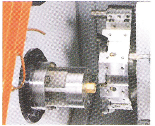 Double Turret: Main Turret for O.D. turning, sub turret for I.D. turning; two turrets work simultaneously |